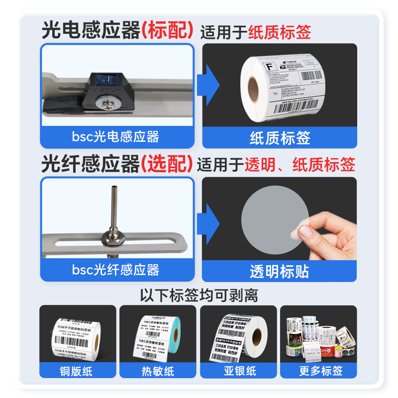 bsc-DX130剥离机【光纤版】可剥离透明标签、纸质标签(不剥离【黄底纸标签】【易碎标签】)